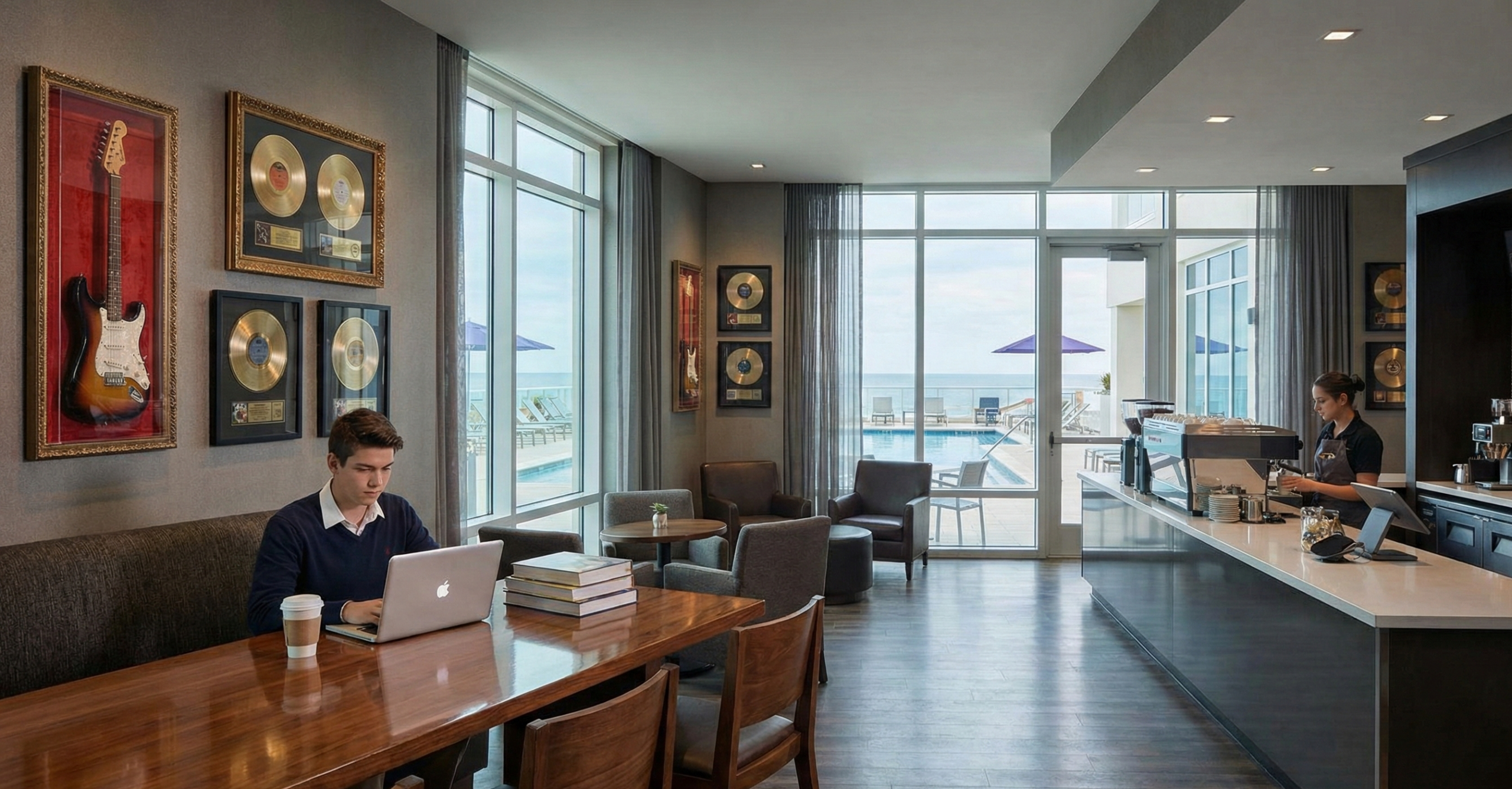 A bit of a hidden local gem, Copperline Coffee is tucked inside the Hard Rock Hotel on A1A. It is significantly cleaner, quieter, and more upscale than a typical strip-mall coffee shop.